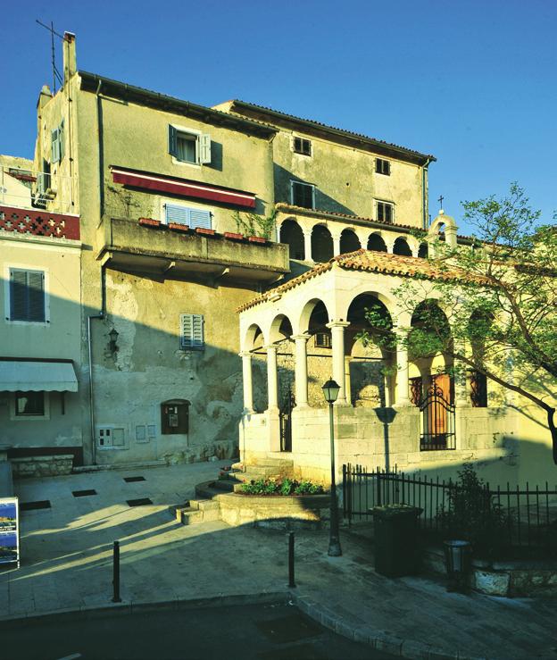 In the 13th c. it was reconstructed by Bishop Oton. Having a rectangular ground plan with square corner towers and inner courtyard with cistern, the crenellated defensive walls provided additional protection. On the eastern slope outside the castle walls stood a Romanesque parish church from the 11th c., whereas St. George’s Church on Sv. Juraj Island with its characteris-tic ground plan with two apses dates from the pre-Romanesque period. Te three-aisled basilica of St. Mary of the Sea was built in the Romanesque, on the coast next to the Benedictine monastery.