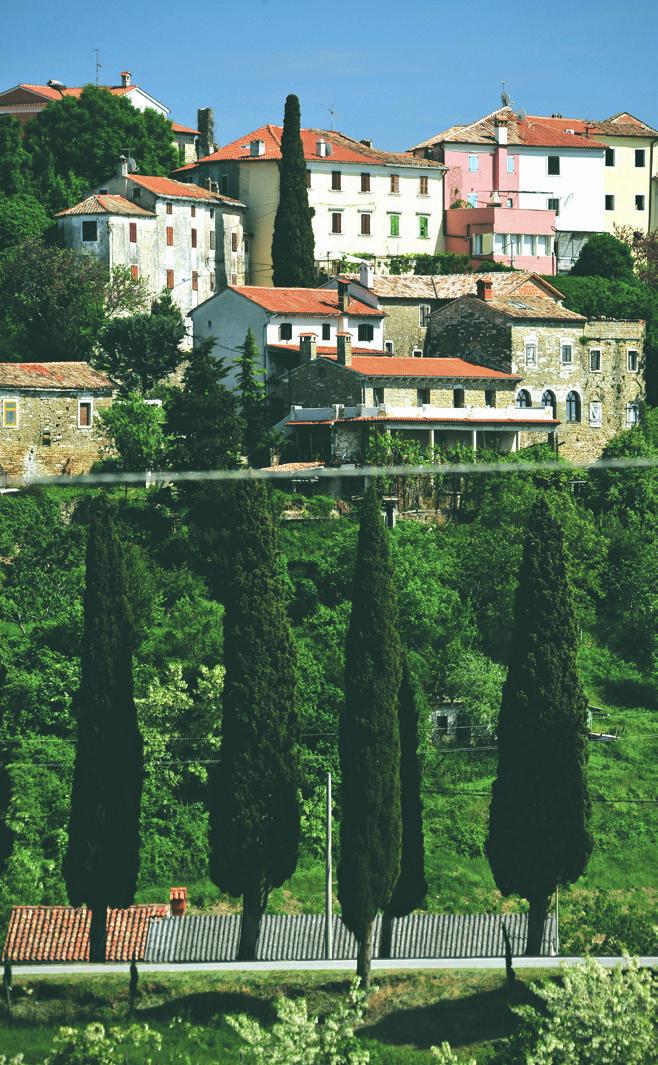 In a sequence of fortifcations and towns lined on the hill as a wreath adorning the river val-ley, lies oprtalj. Strategically positioned above the river, it was once a fortifcation surrounded by walls. Houses were later built against the town walls, and among them is the hardly observable former town gate. opposite the gate stands the great Venetian loggia with a lapidarium, and beside it on the high walls, a plateau with a view reaching as far as the sea, over the woods, vineyards, the rich and fertile area, evoking the historic dimension of the town acquired by its location.