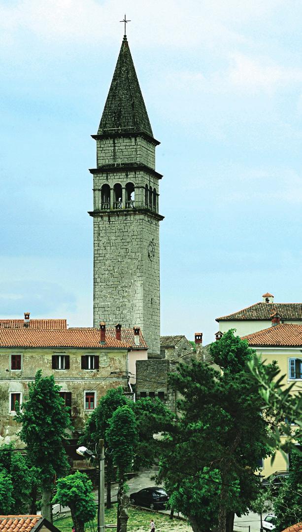 Te historical sights include the partly preserved medieval walls and town gate from the 14 th c., with the one-time Bishop’s Palace next to it. Also, the small church of St. Roch from the 17 th c., St. Michael’s church at the cem-etery with frescoes from the 15 th c. and the Parish church erected on the site of a cathedral dating from the 14 th c. Te belfry, 48 meters high, was con-structed at the end of the 19 th c. and is among the tallest ones in Istria. Next to it is a stone measure which was once used for collecting the tithe. Some of the precious remains include a valuable organ, many relics, inscriptions and other objects testifying to the rich period of the seat of the diocese.