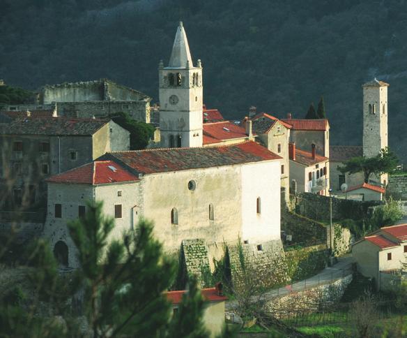 « Previous Page Table of Contents Next Page »kao i boljun , Lupoglav je smješten na od davnina va-žnim prometnicama, ali i strateškom položaju zbog kojega je bio važan. Područje je bilo naseljeno u prapovijesti, a u sre-dnjem se vijeku razvio kaštel na litici iznad sela Gorenja Vas. Osim njega, pripadalo mu je i seosko naselje Dolenja Vas. U 11. st. bavarski ga knez daruje akvilejskom patrijarhu za-jedno s okolnom Lupoglavskom gospoštijom. Posjedom je upravljalo nekoliko vazalnih feudalnih obitelji, kasnije je postao dijelom Pazinske knežije. U 17. st. pripadao je obitelj Brigido koja gradi novi utvrđeni ladanjski kompleks podno staroga kaštela, na cesti između Vranje i Roča.