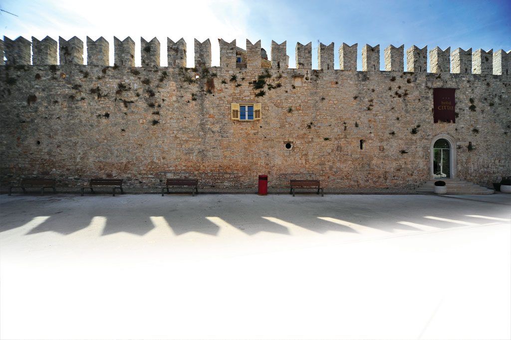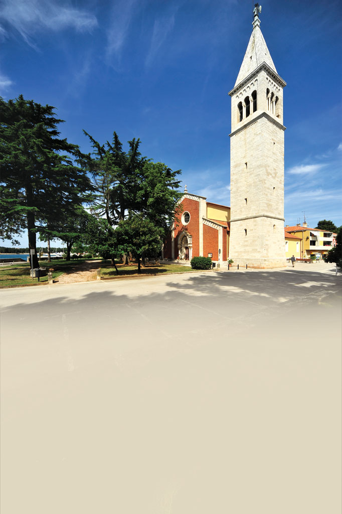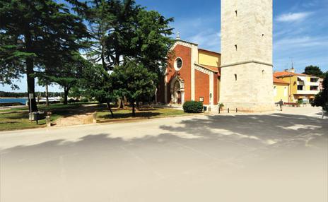 On suppose, sans preuves tangibles, que déjà à cette époque, c' était le centre du diocèse de Novigrad. Il est très probable que, au VIme siècle, on avait construit une église près du cimetière, qui conservait le pouvoir du Saint-Pélage, le saint de la ville. Le premier évêque documenté de Novigrad (Civitas Nova), qui s' appellait Maurice, a vécu beacoup plus tard, à la fin du VIIIme siècle. Son nom n' est pas à chercher dans les livres, mais il suffit de visiter le ciboire dans le Lapidarium de Novigrad et lire l' inscription en haut de la page où l' on peut reconnaître parmi les mots gravés MAURICIUS EPISCOP(US). Il est mentionné en tant que client de ce ciboire qui était situé, à l' origine, au-dessus des fonts baptesimaux, dans le Baptistère (plus tard démoli) de la Cathédrale de Novigrad. Le seul fait que la ville avait sa cathédrale, déjà au VIIIme siècle, en dit long sur son importance. Ici, aujourd' hui c'est l' église paroissiale de Saint-Pélage et Saint-Maxime, un peu modifiée au cours de l' histoire. Les fenêtres, au nord de la nef centrale de cette basilique à trois nefs, sont les mêmes grilles des fenêtres en pierre que regardait l' évêque Maurice. À cette époque, l' église était remplie de meubles en pierre de couleur, dont des fragments se trouvent, encore aujourd' hui, dans le Lapidarium de l' église et celui de la ville.
