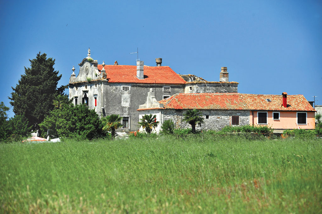 Il est curieux de voir, donc, à quelques miles au nord, le long de la côte, un style complètement différent. C' est l' exemple du grand monastère à Dajla (près de Novigrad) avec l' église de Saint-Jean Baptiste de la seconde moitié du XVIIIme siècle et, propriété bénédictine du début du IXme siècle, qui a été reconstruit selon le plan de l' architecte français Le Terrier de Manetot. Ce spécifique classicisme français est unique dans la région istrienne et, même avant la construction de la maison de l' aumônier qui ressemblait à l' église et, du palais central à deux étages, Dajla devait être un complexe impressionnant. On peut seulement imaginer l' aspect du complexe, dans la seconde moitié du XIIIme siècle, quand l' évêque de Novigrad l' avait donné à la famille de Koper, Sabini, laquelle le reconstruit de sorte qu' il ressemble à un château. Après avoir appartenu à différents propriétaires, à travers l' histoire, le complexe est, à juste titre, retourné à l' église, il y a quelques années.