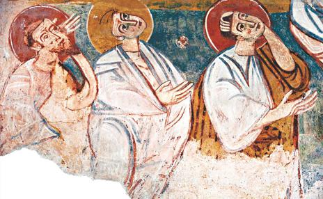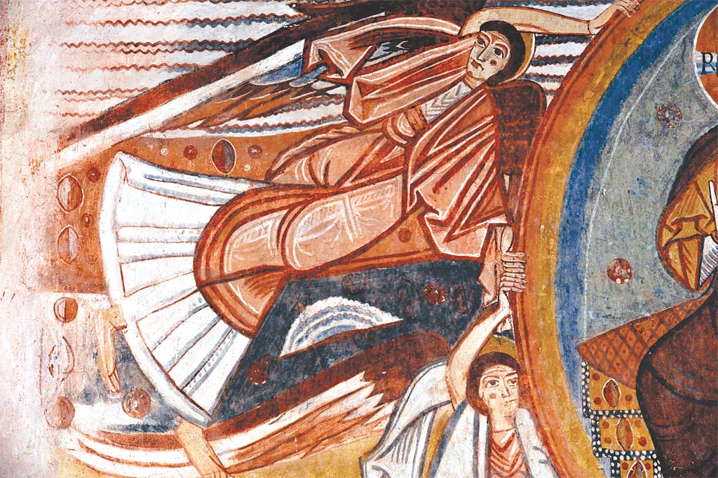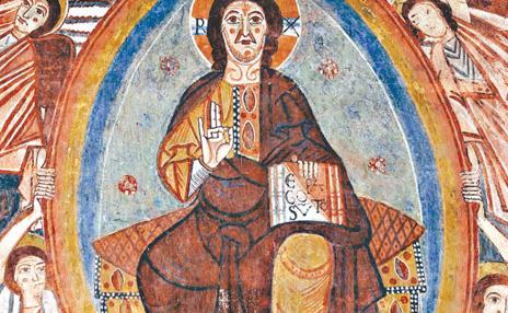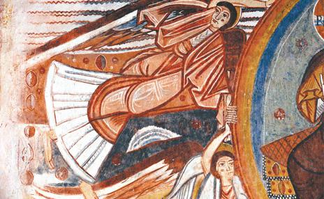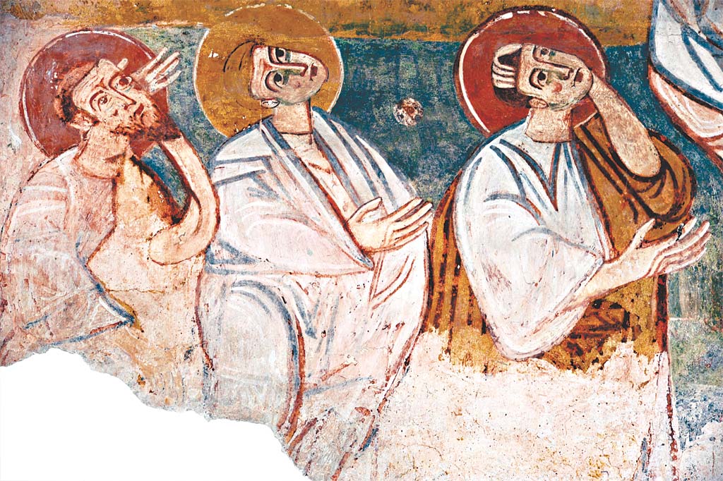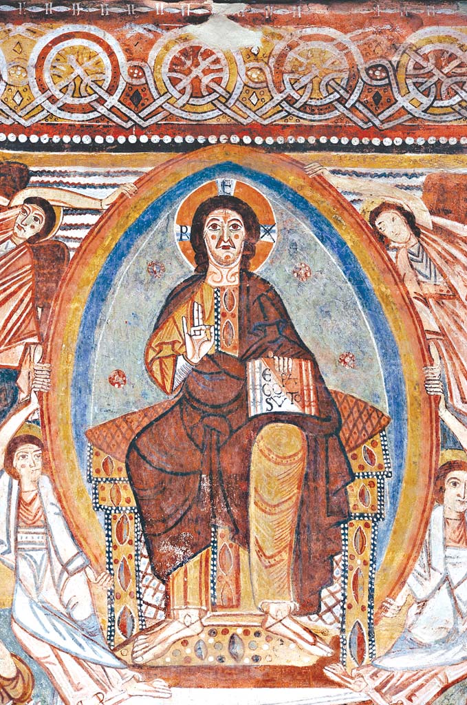 Stenska slika v sv. Foški je nastala v začetku 12. stoletja, neposredno po izgradnji cerkve. Tehnološko je zanimiva, ker ni freska temveč poltempera. Kristus sedi na prestolu, okrašenem z dragulji, znotraj mandorle mavričnih barv. Z desnico blagoslavlja na vzhodnjaški način, z levico pa drži knjigo na kolenih. Na njej skrajšano piše ego sum omnipotens deo (jaz sem vsemogočni Bog). Mandorlo v nebo dvigajo štirje angeli, a pod njimi šest apostolov začudeno opazuje Vnebohod. Prizor je reduciran na šest apostolov zaradi formata ter, da bi se ohranila velikost figur in s tem monumentalnost kompozicije. Ozadje je razdeljeno na pet vodoravnih pasov. V najbolj najnižjem pasu se nahajajo apostoli in Kristusova stopala. Nad njim je svetlejši pas, katerega se apostoli dotikajo le s svojimi avreolami. Na tem delu je bilo zapisano latinsko besedilo, ki je danes neberljivo in je verjetno služilo kot predloga za prizor. Na samem vrhu, nad nebesi, je široka bordura pleternega ornamenta. Pod Vnebovhodom sta dva ptiča, ki pijeta iz keliha, simbol evharistije. Na temenu apside so ostanki Sedes Sapientiae (Marija na prestolu s Kristusom v naročju). Opazna je skrajna stilizacija figur v geometrizirani ornament. Pripisane so severnoitalijanski delavnici, ki je uporabljala predloge južnoitalijanskega porekla.