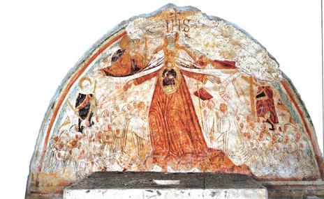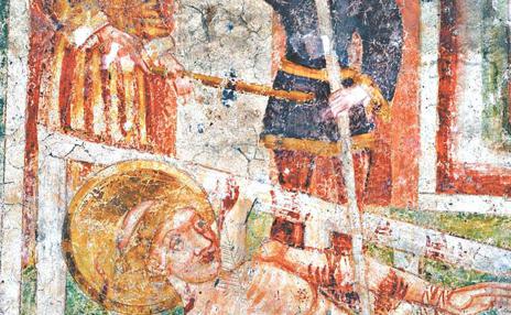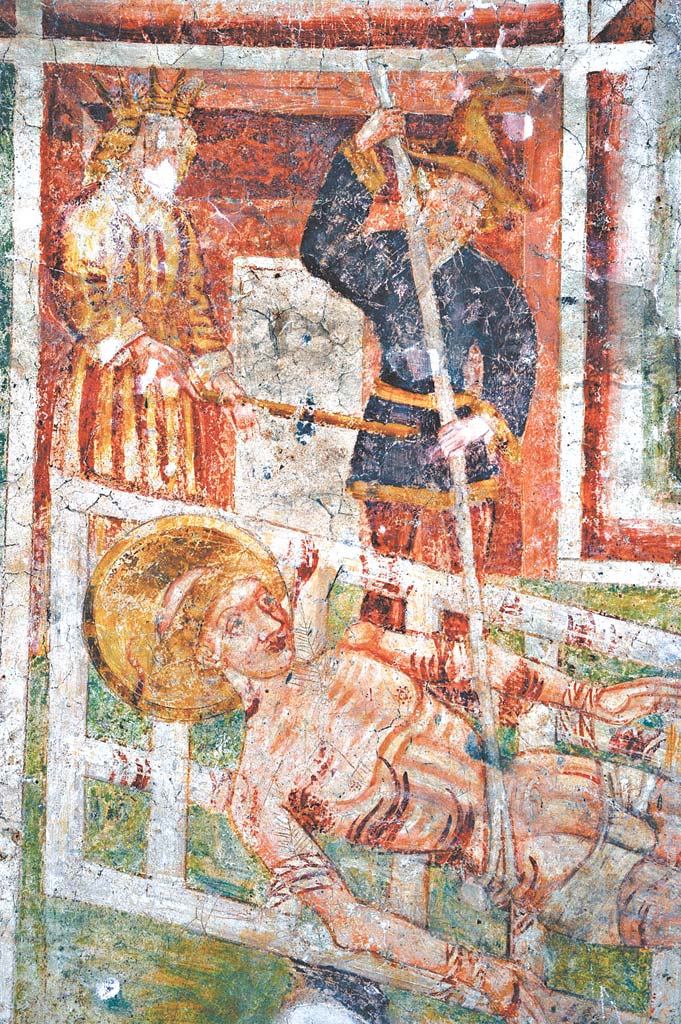 Sv. Jakob je na severnem robu naselja. Izvirna gotska cerkev je imela vrisano apsido, ki je kasneje odstranjena. V poznejših intervencijah je bila cerkev podaljšana, na severni steni pa je bila prebita odprtina, v katerega je vzidana kamnita rozeta originalnega pročelja. To je deloma uničilo freske. Na steni nekdanje apside je Marija zaščitnica, pod njen plašč pa so se zatekli člani barbanske bratovščine, ki imajo individualizirane fiziognomije. Na stranskih stenah je legenda sv. Jakoba, a na južni mučenje sv. Lovrenca. Cerkev je poslikala že večkrat omenjena delavnica Janeza iz Kastva, kar je najbolj očitno pri eni najlepših figur, sv. Lovrencu, in na prizoru njegovega mučenja. Na isti steni se na špaleti okna nahaja redek ikonografski prizor v istrskem stenskem slikarstvu: v močni svetlobi zunanje luči je na rdeči podlagi naslikan bel okostnjak – smrt s koso in razvitim zvitkom, s čemer je slikar dosegel vtis nenadnosti vhoda smrti skozi okno.