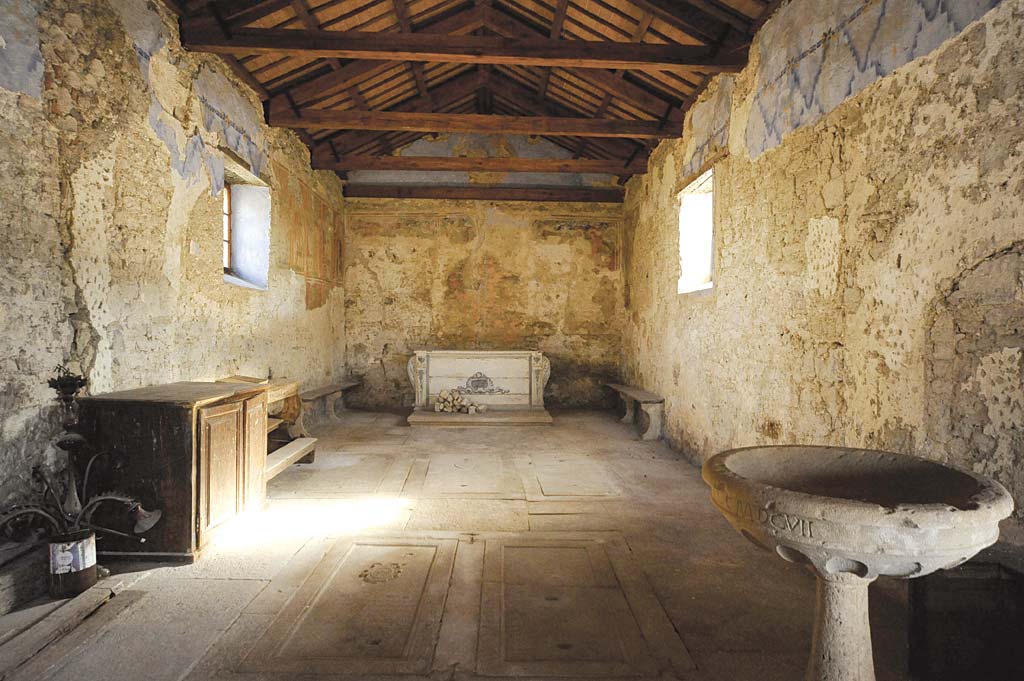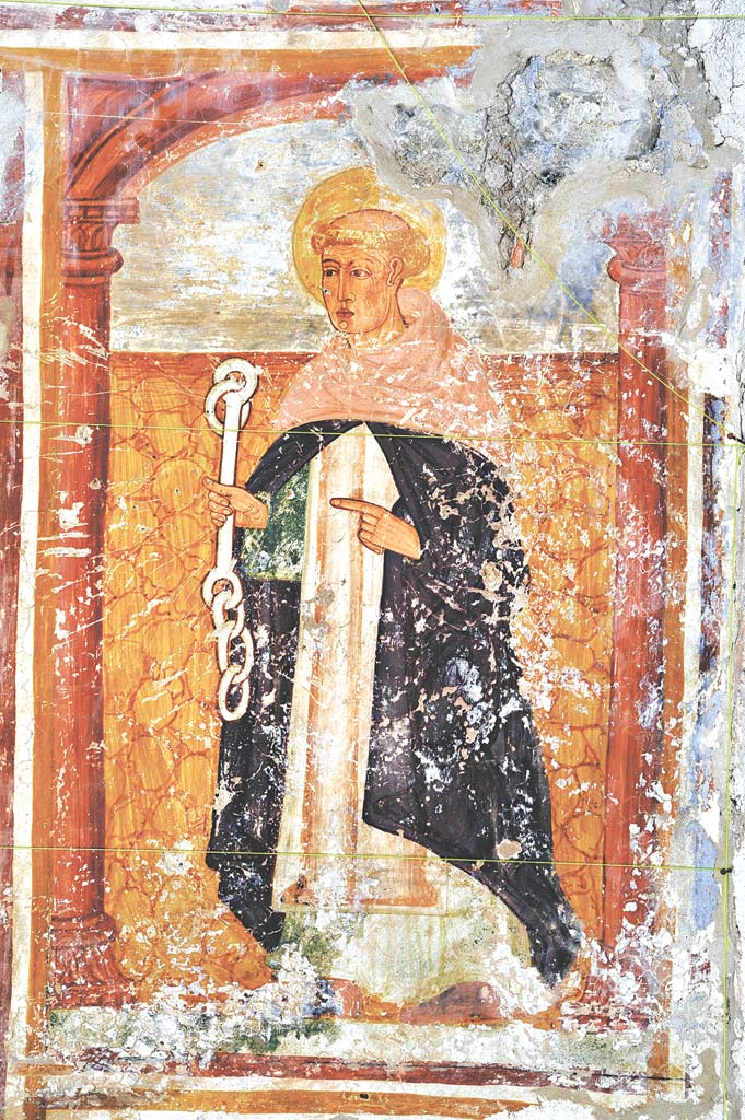 Na nasprotnem vhodu v naselje je cerkev sv. Roka. Cerkev je bila podaljšana in ji je dodana lopica. V najstarejšem delu cerkve so ohranjeni svetniški prizori, ki jih je naslikal Anton iz Padove. Najbolj ohranjena je figura sv. Lenarta, svetnika z okovi, na katerem se najbolje vidi tipično Antonovo oblikovanje figur, anatomske podrobnosti precizno izrisane risbe in pastozne neprozorne plasti barve.