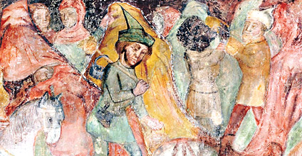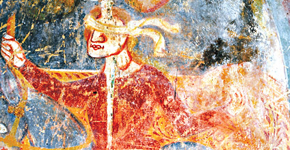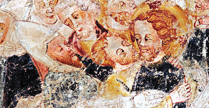 V cerkvici sv. Sebastijana, desno za okvirjem baročne slike, je komaj vidna roka z mečem, del prizora sv. Pavla. Mišičasta nadlaht, oblikovanje ob telesu oprijete draperije in karakteristični kolorizem odkrivajo poteze mojstra Dominika. Bolj znane freske se nahajajo v gotski cerkvi sv. Katarine, skladni stavbi, kateri je dozidana lopica s polnimi stenami in tremi odprtinami.