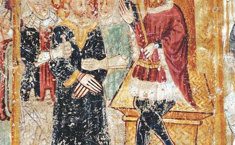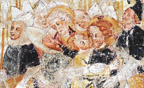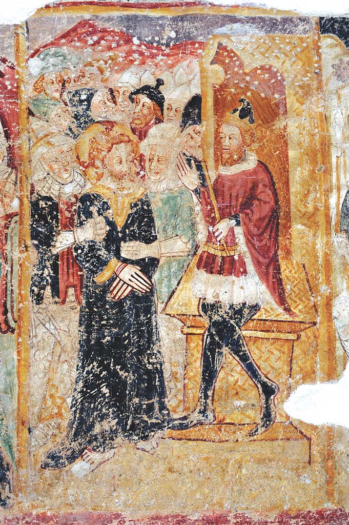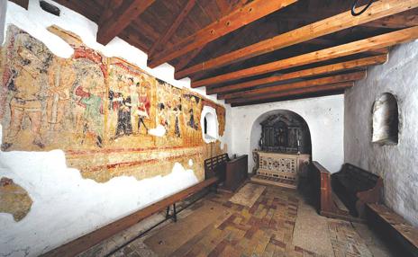 Stenske slike v cerkvi sv. Mihaela je spomladi leta 1947 odkril Branko Fučić. Ohranile so se samo na severni in deloma na zahodni steni. Prikazujejo Poklon kraljev, Zadnjo večerjo, Molitev na Oljski gori, Judežev poljub, Kristusa pred Pilatom, Bičanje in sv. Jurija. Okrnjeni cikel Kristusovega življenja je nastal v klimi kozmopolitske gotske dvorne umetnosti. V nekaterih prizorih, kot je Judežev poljub, so figure nagnetene kot sardine. Deli prizora so gosto postavljene človeške glave, v prostorskih tričetrtinskih profilih in naglih nagibov, ki se lomijo v vratu. Grafično oblikovanje volumna, ki je doseženo s senčenjem s tenkimi linijami okra, je stilna posebnost te delavnice in eden od razlogov za povezovanje tega cikla s slikarstvom Alberta iz Konstanza.