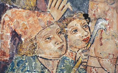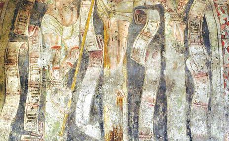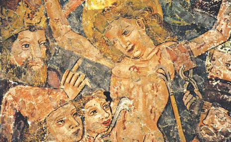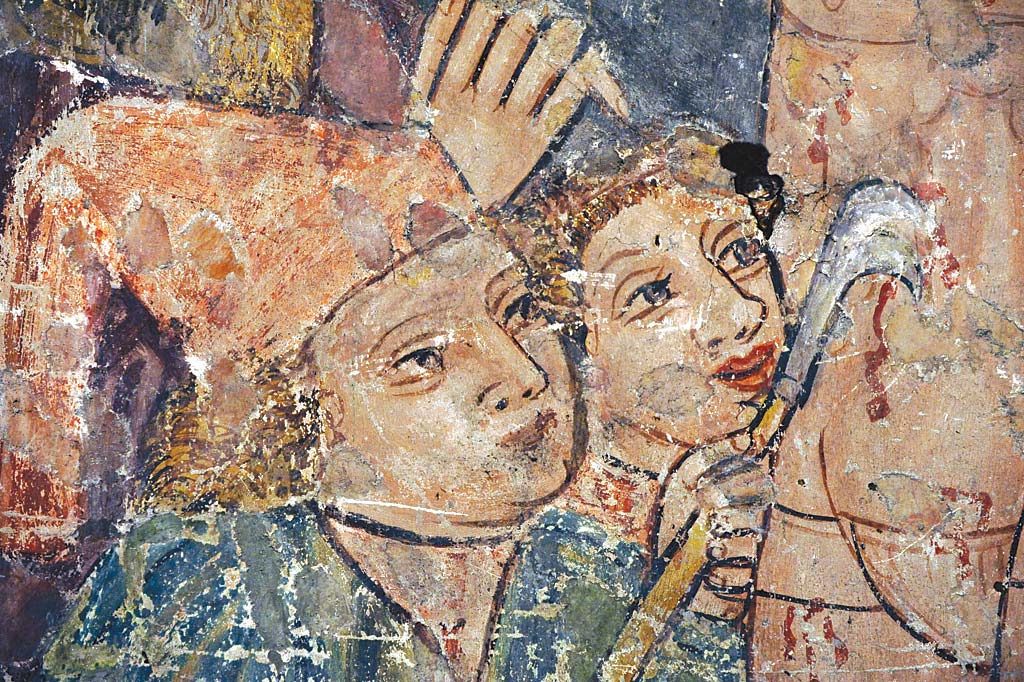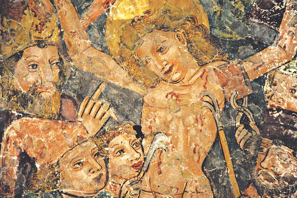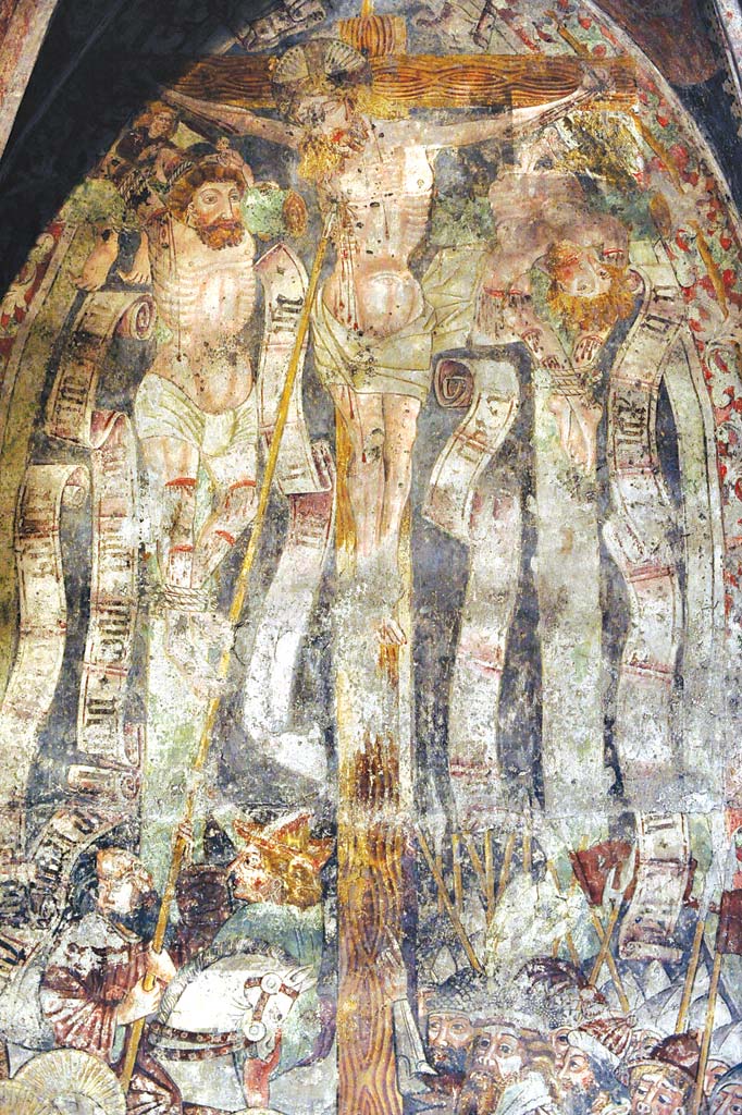V župnijski cerkvi sv. Jurija se nahajajo freske, ki jih lahko pripišemo dvema delavnicama, Vincenca iz Kastva in Pisanega mojstra. Zvezdasto rebrasti obok je vgrajen v enostaven kvadratni prezbiterij. Polja oboka so izpolnjena z angeli-muzikanti. Na notranji strani slavoloka, na Poslednji sodbi, prekleti odhajajo v usta Leviatana. Na podločju so preroki iz Jesejeve korenike. Mučeništvu sv. Jurija, zavetniku cerkve, so posvečeni prizori na desni strani prezbiterija. Gotski naturalizem natančno prikazuje prizore mučenja, na katerih so svetnikovo telo trgali na kolesu z žeblji, kuhali v kotlu in raztrgali s česali za volno. Ampak Jurij je v osrednjem polju bil upodobljen tudi na običajen način, kot vitez, ki ubija zmaja in rešuje devico. Na žalost je to redek prizor, ki ni bil ohranjen v celoti, temveč je prepoznaven le po svojem zgornjem delu, na katerem devica stoji pred obzidjem mesta. Na severni steni prezbiterija je naslikana tema, ki je bila popularna v srednjeevropski umetnosti znana pod nemškim imenom Kreuzigung mit Gedränge (Križanje med dobrim in slabim razbojnikom). Razpeti Kristus med dvemi razbojniki, ki sta izkrivljena na svojih križih, je pravkar izdihnil. Okoli njega je množica vojakov na konjih, med katerimi Longin s prstom kaže na umirajočega. Skupina s tremi Marijami in Janezom podpira Devico Marijo, ki od bolečine pada v nezavest, Magdalena s spuščenimi lasmi joka in objema vznožje križa, vojaki s karikiranimi grdimi fiziognomijami pa kockajo za Kristusova oblačila. Besedila evangelijov so izpisana na zvitkih, ki izpolnjujejo vse proste površine ozadja in, kot stripovski oblački, prinašajo besede prisotnih akterjev. Ta slika je ena izmed desetih najlepših srednjeveških upodobitev v Istri, njene figure pa se lahko primerjajo s tistimi na beramskem Mrtvaškem plesu.