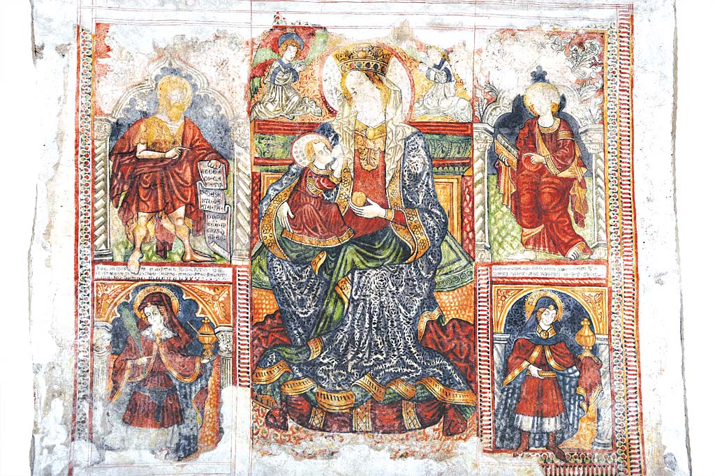 V obeh cerkvah so ohranjeni ostanki stenskih slik. Župnijska cerkev je v celoti gotska stavba. Zunanjščina je zgrajena iz precizno obdelanih kamnov klesancev s profiliranim podnožjem in odprtinami. V notranjosti je shranjen vreden inventar, poudariti je treba gotsko Marijo z otrokom, "zlati oltar" posvečen sv. Juriju, zgodnjegotski zvon. Na južni steni je freska mojstra Alberta iz Konstanza, ki prikazuje naslikani oltar na steni. Izmed vseh Albertovih slik, je na tej najbolj ohranjen izvirni kolorit. V središču je monumentalna Marija z otrokom arhaične ikonografije. V eni roki drži jabolko, a v drugi doječega otročiča. V poljih so sv. Janez Krstnik in sv. Janez Evangelist ter sv. Kozma in Damjan z glagolsko zapisanimi imeni v avreolah. Albert se prilagaja ambientu z uporabo glagolice na napisih, tukaj pa se je podpisal in datiral delo z napisom v latinici in glagolici, s tem pa ta freska simbolizira dvojezičnost in dvopismenost srednjeveške Istre.