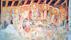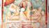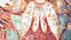 Prevladujeta rdeči in rumeni oker, med katerima se bleščijo apnene beline teles. Ob njih se nevsiljivo pojavljajo pastelno zelene barve. Prizori so razigrani z vijugastimi linijami draperij in geoloških delov narave.