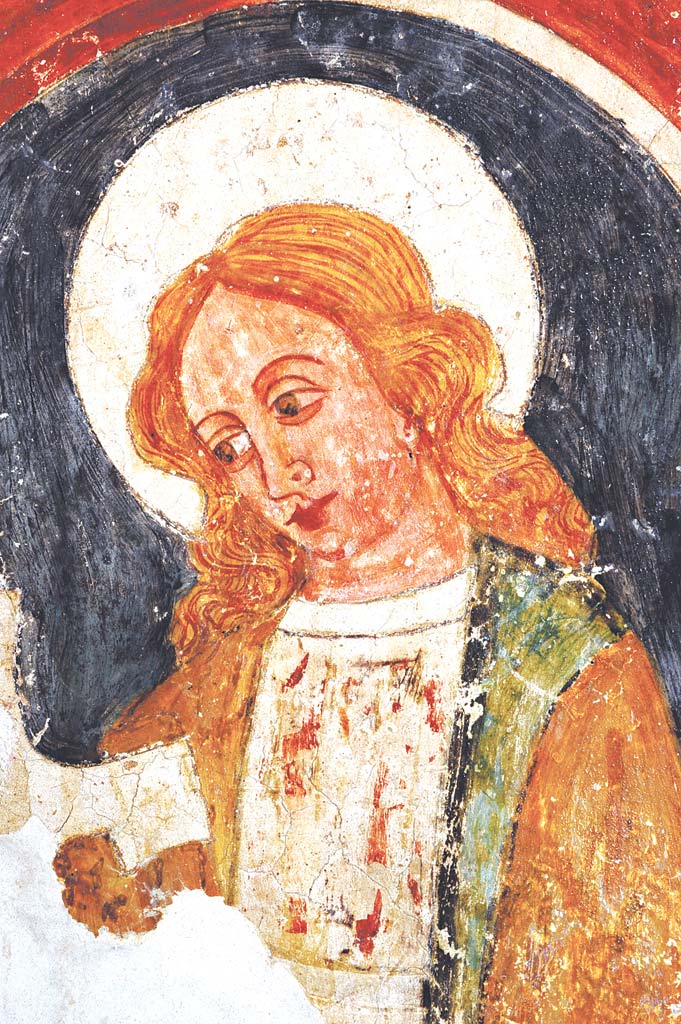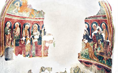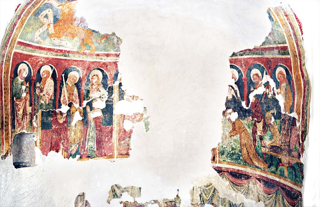 Nasprotno je kapela sv. Antona bila raziskana in tako vemo, da so freske obstajale, ohranjeni pa so le težko berljivi fragmenti. Na enem fragmentu se nahaja znameniti grafit – Ročki glagolski abecedarij, znani glagolski spomenik iz začetka 13. stoletja, vpraskan na posvetilnem križu.