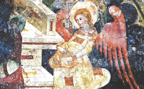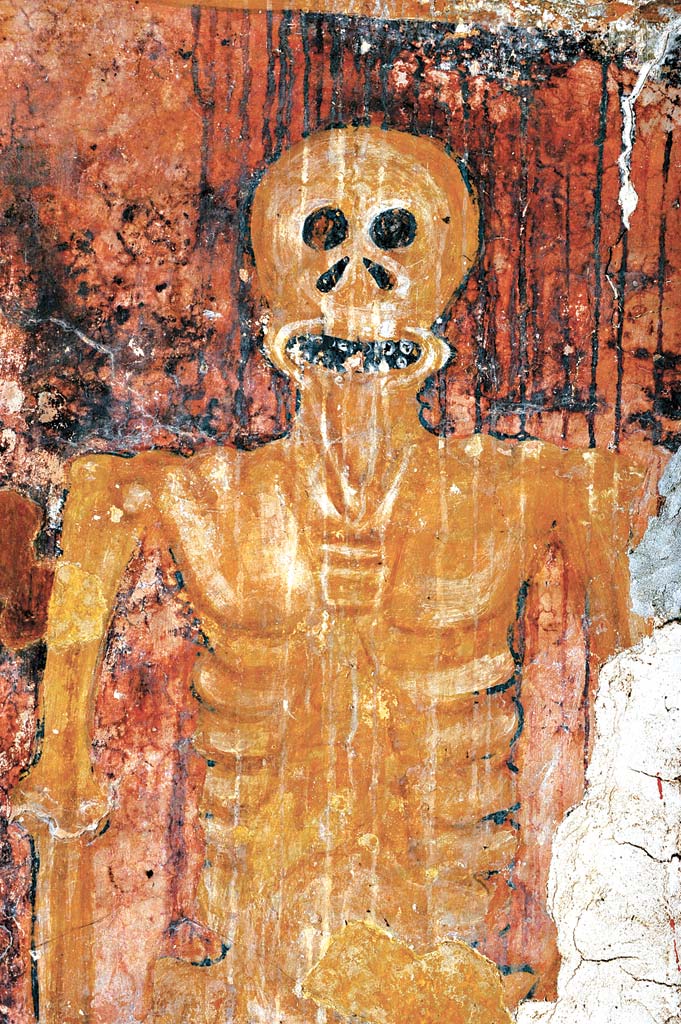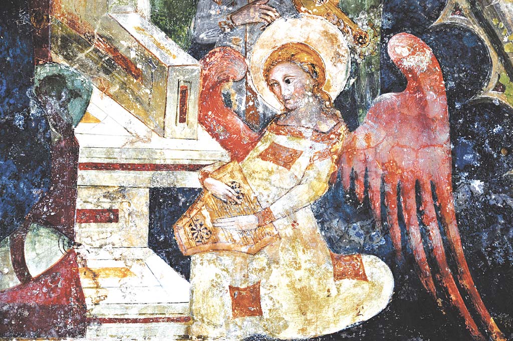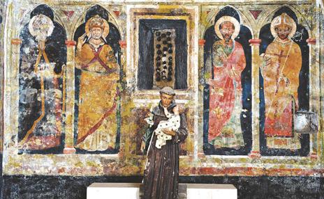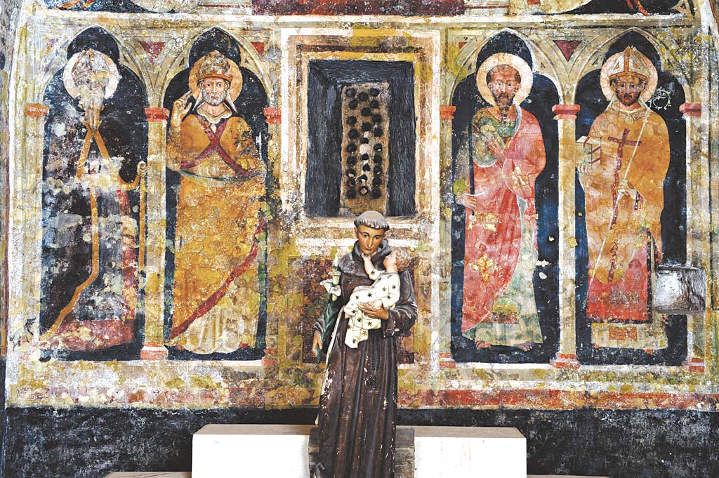 Avstrijski konzervator Anton Gnirs je cerkev sv. Antona, ki je do takrat služila kot skladišče, od vdove Foške Peteh odkupil za 450 kron z denarjem avstrijskega nadvojvode in prestolonaslednika Franca Ferdinanda in v njegovem imenu. V zemljiških knjigah pa je danes kot lastnik vpisan Gnirs. Cerkev je zgrajena iz pravilno zloženih in pozorno obdelanih klesancev. Na južni in zahodni steni so ohranjene gotske tranzene. Kamniti elementi okenske odprtine na pročelju so rekonstruirani v restavratorskem posegu okoli leta 1964. Cerkev ima edinstveno arhitektonsko tipologijo z vrisano apsido, ki je šilasto obokana, tako kot cerkvena ladja, ki je razčlenjena s polkrožno zaključenimi nišami. O naročnikih in graditelju cerkve priča napis iz leta 1381, ki je vzidan v pročelje. Imena Marino, Sladonich in Teodor je možno povezati z bratovščino, ki verjetno nosi isto ime kot zavetnik cerkve, in ki je upodobljena na levi steni apside, kar govori o zgodnji vlogi bratovščin kot naročnikov umetnin v Istri. Na desni steni apside se nahajajo trije grbi. Levi je najbolj ohranjen in pripada družini Devin, a desni je habsburški. Prizor Marijinega kronanja se nahaja v luneti apside. Pod njim se v naslikanih nišah, iz desne proti levi, pojavljajo: sv. Anton Puščavnik, Peter, Pavel in še en svetnik z mitro, palijem in knjigo v desni roki. Na oboku apside so simboli štirje evangelisti, ki so upodobljeni kot človeške figure z glavami njihovih zoomorfnih simbolov. V niši južne stene se nahaja Poklon kraljev, a v nišah severne stene Kristusovo Vstajenje in Vnebohod. Ikonografska zanimivost z makabralno tematiko je prizor smrti oz. okostnjakov na zahodni steni. Na desni strani zahodne stene je del prizora Abrahamovega naročja. Na slavoloku so ostanki Oznanjenja, na oboku ladje pa sta na vsaki steni dva registra s skupno osmimi prizori, ki so na žalost v zelo slabem stanju. Prepoznati je prizor Križanja. Prestol v prizoru Kronanja je obdan z osmimi angeli muzikanti, ki igrajo na psalterij, fidl, madoro, portativ, lutnjo in def. To so najstarejše upodobitve glasbil v Istri. Lirični opisi angelov z elegantnimi gibi prstov, ki klečijo v blago zakrivljeni drži telesa, ter svetle pastelne barve oblačil in njihovi subtilni kroji kažejo na leksiko mednarodne gotike, izraz prefinjene dvorne etikete. Splošni vtis slikarij določa njihov kolorit. Prevladuje temnomodra, skoraj črna barva, s katero je slikar napolnil ozadja in cono velarija. Iz te teme se prebijajo arhitekturna scenerija in figure v rumenih, zelenih in rdečih tonih. Spretnejši mojster je naslikal Kronanje in svetnike pod njim, manj spreten pa vse ostale. Freske so povezane z beneškim likovnim ustvarjanjem, z mojstrom, ki se je učil na dobrinah beneških primitivov, predrenesančih slikarjev, v ozračju, ki ga je ustvarjala umetnost Lorenza Veneziana, Catarina in Donata. Novejše raziskave so opazile možen vpliv sienskega slikarstva, ki je preko Benetk prispel v Istro.