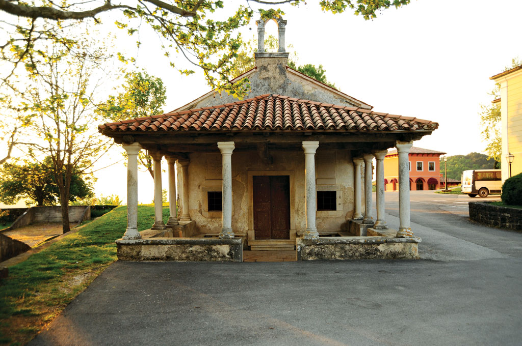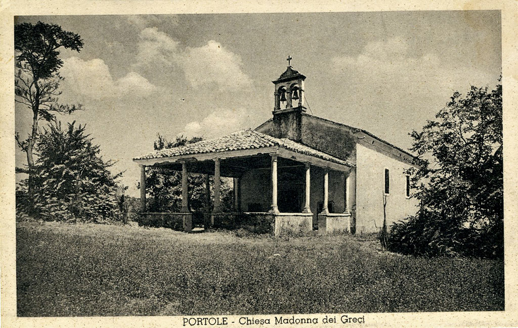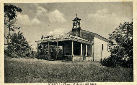 Kot Castrum Portulense se v pisnih virih prvič omenja leta 1102, ko ga formalno upravlja oglejski patriarh. Ohranjen stavbni fond iz tega obdobja je omejen na ostanke obrambnega obzidja in dele stare župnijske cerkve sv. Jurija, ki so vidne v spodnjem delu severnega zidu.