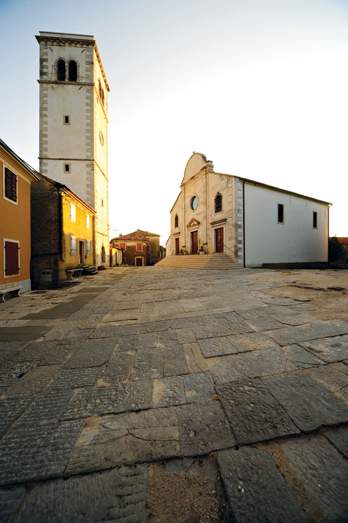Benečani so Oprtalj zavzeli leta 1421 in ga vključili v obrambni sistem svojih posesti v Istri. Najosupljivejše pričevanje utrjevanja in širitve obzidja je vsekakor stolp mestnih vrat, enako pa je pomemben tudi kvadratni stolp pod župnijskim uradom, ki je bil kasneje spremenjen v stanovanjski prostor. Znotraj obzidja je nedaleč od vhoda v mesto bila zgrajena loža, na osrednjem trgu fontik, a namesto stare župnijske cerkve se začenja gradnja nove triladijske s križno-rebrastim in zvezdastim obokom ter globokim poligonalnim prezbiterijem, katerega elemente bodo okrasili podpisani kranjski kamnoseki. Zanimivost njihovih reliefov se ne ustavi na upodobitvah svetnikov. Prepoznamo tudi posvetne osebe– viteza, gozdnega človeka, črnca. Cerkev je posvečena leta 1526, v času, ko se v ostalih mestih že zdavnaj gradijo renesančne stavbe, zato je nenavadno oprtaljsko vztrajanje pri načelih že preživelega gotskega sloga. Niti deset let kasneje je bila urejena še ena cerkev, sv. Roka, ki jo je poslikal Anton iz Padove, ne vedoč, da se bo v naslednjih stoletjih spremenila v mavzolej bogatih oprtaljskih družin.