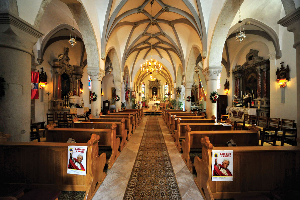 Kraj Čepić in bližnjo veliko triladijsko cerkev Marije Snežne ter kraj Zrenj.