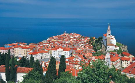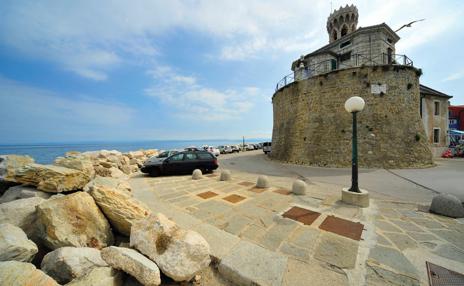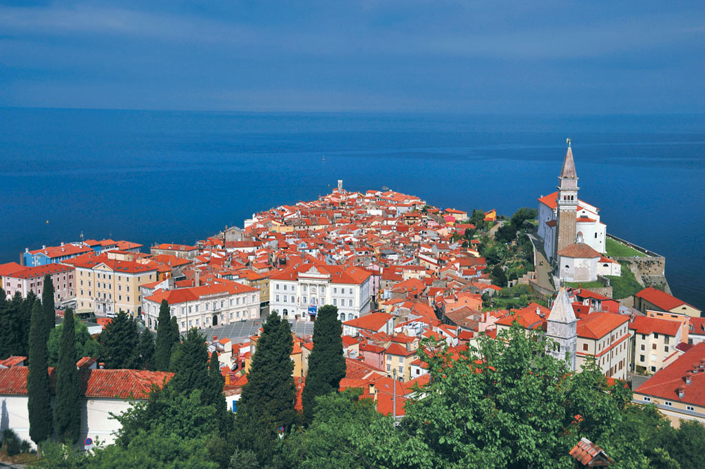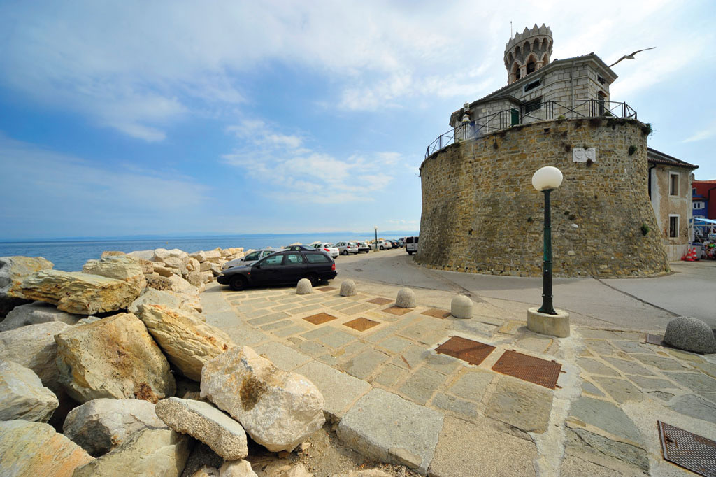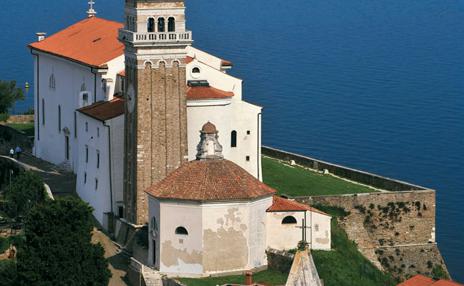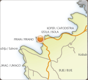 Leži na polotoku, nad katerim dominira cerkev sv. Jurija, brani pa ga mogočno obzidje vzdolž hrbta griča Mogoron, ki se spušča globoko v morje med Piranskim in Strunjanskim zalivom.