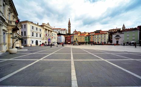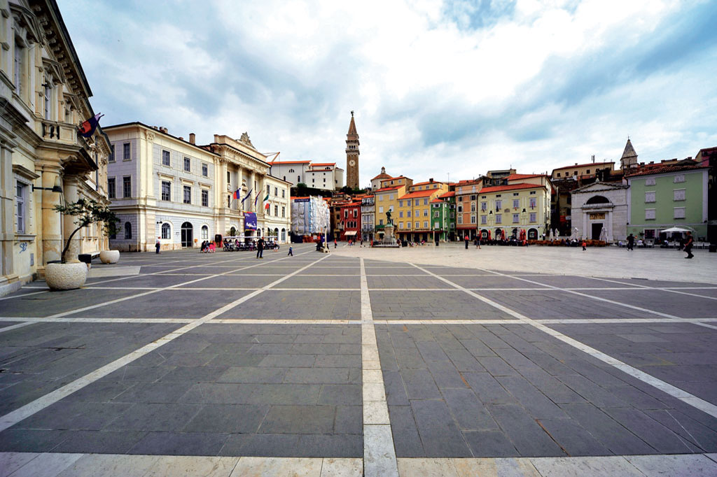 Devetnajsto stoletje je čas sprememb v strukturi spodnjega dela mesta. Osrednji Tartinijev trg nastane z zasipavanjem notranjega pristanišča leta 1894. Vhod je označen z nosilci za zastave iz 15. stoletja, žariščna točka pa je Tartinijev kip Antonija Del Zotta. S temi posegi je nastal eden izmed najbolj šarmantnih trgov na Jadranu. Okoli njega se gradijo nove upravne stavbe s historicističnimi obeležji. Na mestu stare cerkve sv. Petra je leta 1818 nastala elegantna stavba s klasicističnim pročeljem po projektu Pietra Nobila. Porušena je mestna loža, ki jo je zamenjal kazino, fontik je zamenjalo sodišče, zgrajena je tudi nova občinska palača. Trg in mandrač obkrožajo plemiške palače (Trevisani, Gabrielli, Ventrella, Fonda) in javna poslopja (secesijsko gledališče Tartini, hotel Piran, Piranski muzej) iz 19. in začetka 20. stoletja., ki se s svojo monumentalnostjo močno razlikujejo od zgodovinskega urbanega jedra. Piran v tistem času ponovno doživlja gospodarski vzpon kot pomožno pristanišče tržaške luke, kar mu omogoča dobro prometno povezanost z morjem, kasneje z železnico in tudi s hidroavioni.