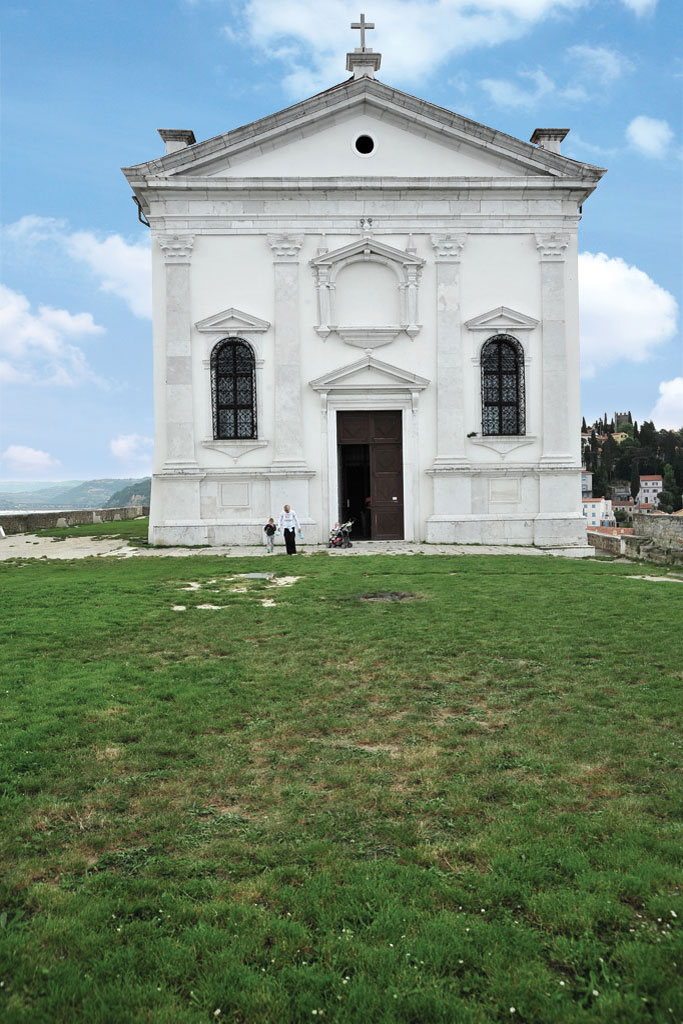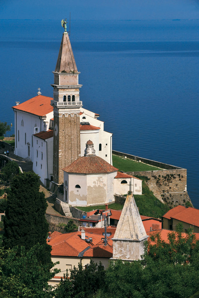 Utrjevanje mesta se konča v prvi polovici 16. stoletja z izgradnjo okroglega stolpa na Punti. Nad mestom dominira kompleks župnijske cerkve sv. Jurija z zvonikom in krstilnico. Prva cerkev, posvečena sv. Maksimilijanu, je nastala že v 6. ali 7. stoletju. V romaniki je zgrajena triladijska bazilika z veliko osrednjo apsido, atrijem in krstilnico pred vhodom. Temeljito je obnovljena v gotiki. Današnji videz dolguje zgodnjebaročni rekonstrukciji iz začetka 17. stoletja, ko je spremenjena v enoladijsko dvorano s palladijevskim pročeljem. Nekoliko kasneje je na vrh zvonika beneškega tipa postavljen bakreni kip angela. V strnjenem mestnem tkivu je ohranjenih več gotskih hiš (hiša na vogalu Tartinijevega trga z vogalnim balkonom iz 14. stoletja, hiša s triforo nad vrati sv. Frančiška) ter renesančnih in baročnih palač (hiša Tartini). V baročnem obdobju so obnovljene številne mestne cerkve: Sv. Štefan in Sv. Marija od zdravja iz 13. stoletja, Sv. Marija tolažnica iz 15. stoletja in križni hodnik frančiškanskega samostana. Na nekdanjem osrednjem mestnem trgu (Piazza Vecchia) je zgrajena mestna cisterna, okrašena s kamnitimi kipi. Najnovejša četrt Borgo iz 17. in 18. stoletja je ostala zunaj obzidja.